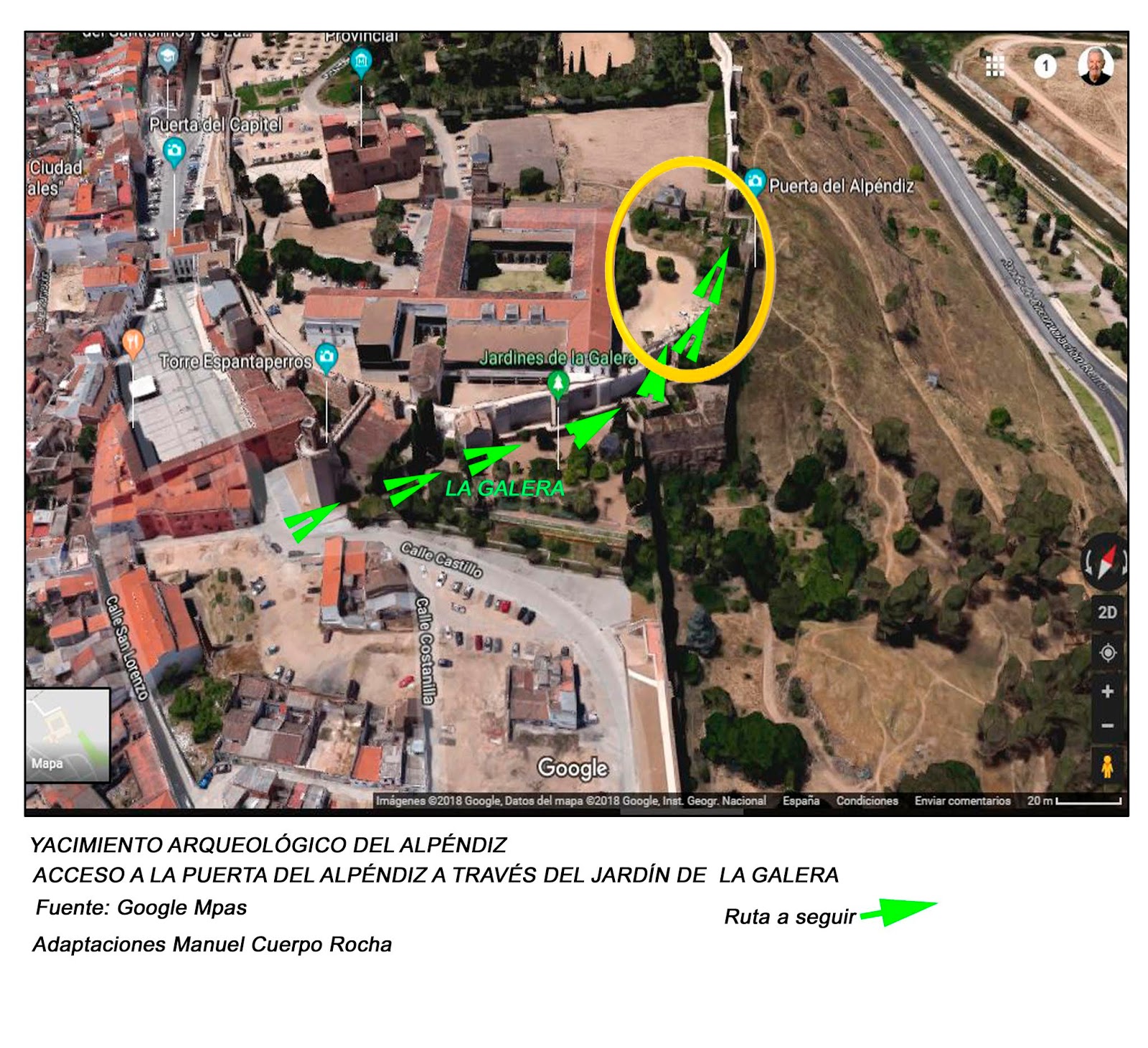 ACCESO A LA PUERTA DEL ALPÉNDIZ A TRAVÉS DE LOS JARDINES DE LA GALERA.